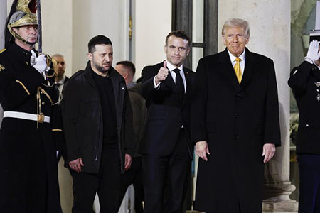 當天下午,特朗普先到愛麗舍宮與馬克龍會晤,澤連斯基隨後抵達並加入。三方會晤持續約35分鐘。