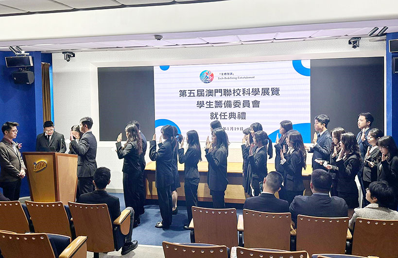 第五屆澳門聯校科學展覽學生籌備委員會就任儀式,昨日假澳門旅遊大學望廈校區協力樓禮堂舉行。
