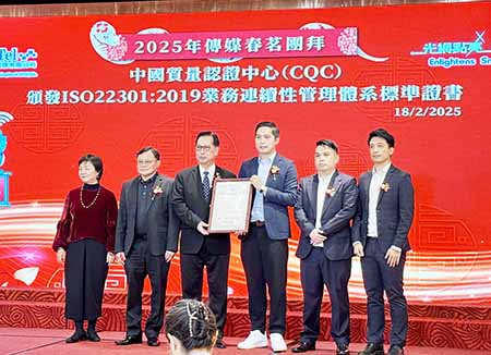 他表示,為進一步提升優化光通信服務質量,MTel電信在2024年再度成功新考取兩項ISO標準證書,創造兩個第一:澳門首家獲由中國質量認證中心CQC頒發ISO ISO37301合規管理體系標準證書,和成為全國通信業首批獲由CQC頒發ISO22301業務連續性管理體系標準證書的企業之一。徐德明認為,能夠再次獲得CQC的高度認可,展現了MTel電信對服務質量管理高標準、嚴要求的不懈追求。