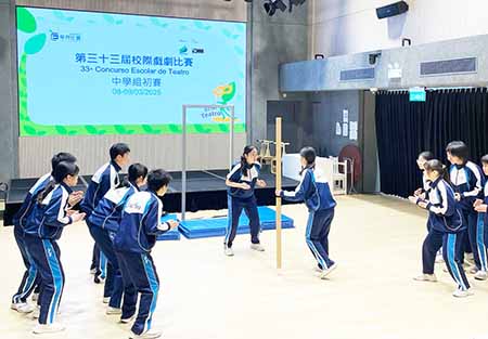 由教育及青年發展局主辦、戲劇農莊協辦的“第三十三屆校際戲劇比賽”共收到13所小學(16隊)及19所中學(29隊)報名參加。因中學組參賽隊伍較多,故特設初賽選出入圍決賽的隊伍,以提升參賽隊伍的演出水平。初賽已於2025年3月8日及9日(星期六、日)於駿菁活動中心舉行。是次初賽的評選邀請到港澳戲劇界資深人士擔任,分別為香港中英劇團助理藝術總監盧智燊先生、文化局演藝學院戲劇學校代表導師陳斐力先生及戲劇農莊行政總監李俊傑先生,評判們均表示今屆演出題材趨多樣化,整體演出水平不俗。