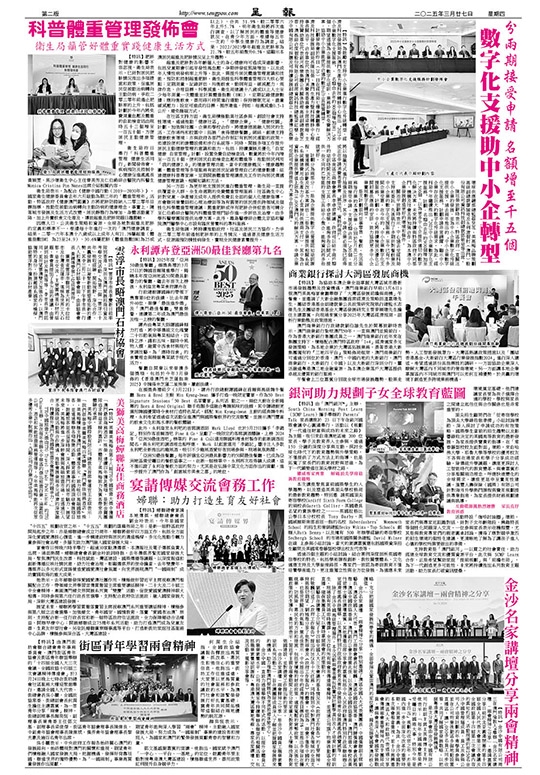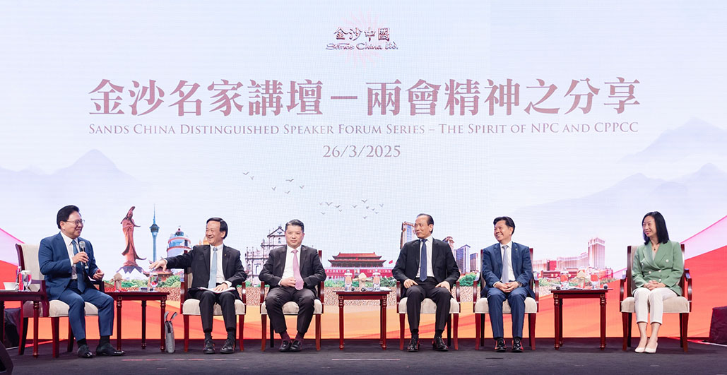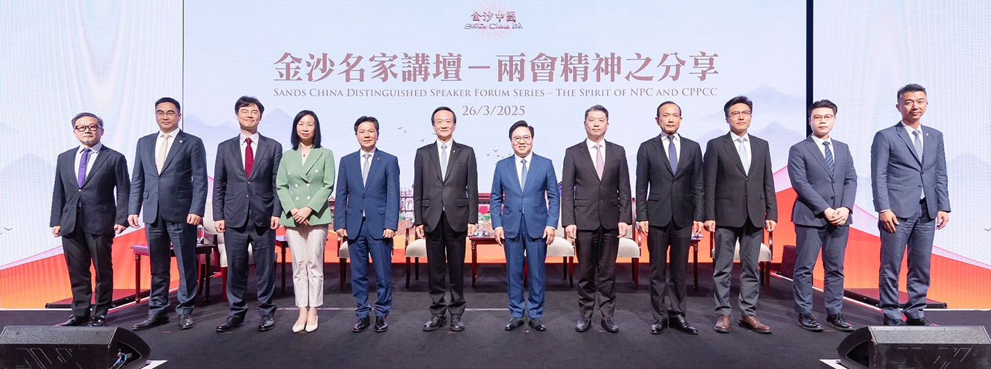 【特訊】金沙中國有限公司周三在澳門倫敦人®舉辦「金沙名家講壇 -兩會精神之分享」,邀請嘉賓分享日前於北京圓滿閉幕的第十四屆全國人民代表大會第三次會議及全國政協第十四屆第三次會議內容的真知灼見。活動現場約有250名金沙中國管理層成員、員工及參與公司人才培育計劃的年青學員參與,並在公司物業後勤區多個地點設置直播區,讓3,000多名員工同步收看,共同了解國家發展戰略,以把握粵港澳大灣區等發展機遇。