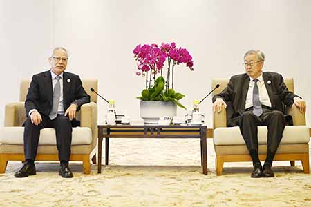 岑浩輝下午與博鰲亞洲論壇副理事長、中國人民銀行原行長周小川會面,共同探討優化澳門產業結構,以及加大力度發展文旅產業的路向。