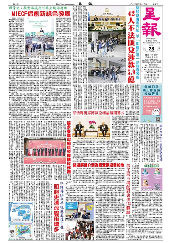 上午,岑浩輝與國務院國有資產監督管理委員會副主任苟坪進行了會晤,雙方就加快推進澳門經濟適度多元發展、提升創新科技產學研轉化成效等議題交流意見。岑浩輝表示,特區政府着力推動澳門經濟適度多元,包括透過促進創新科技產業化,為產業發展注入新動力。他期望國資委今後一如既往積極支持澳門特區和橫琴粵澳深度合作區的建設,進一步推動澳門融入粵港澳大灣區發展,更好發揮“一國兩制”制度優勢,為國家高質量發展作出更大貢獻。