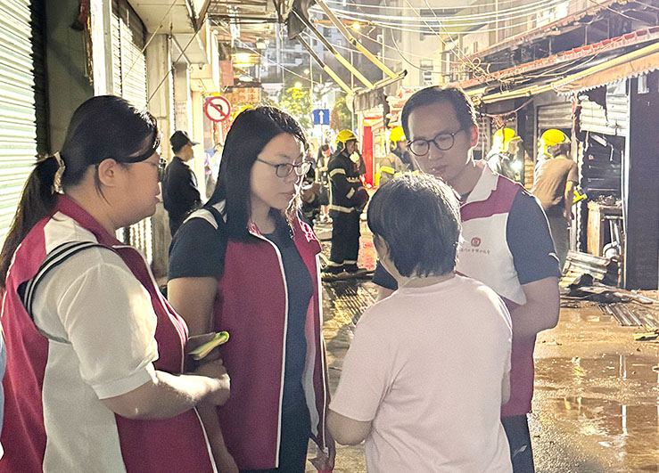 【特訊】祐漢第二街小販區前晚(20日)突發火警,合共廿四檔受災,當中不少攤檔遭焚燬且貨物盡失,損失慘重。澳門市販互助會會長柯清煌、理事長盧惠妮,工聯總會副理事長李靜儀、梁孫旭、趙蘭瑛及多位社區工作人員,市政諮詢委員會委員鄭鎵良,以及北區社諮委副召集人黃潮裕等當晚趕赴現場及為受影響小販提供協助。昨日(21日)與受影響小販進行會議,了解小販受影響的情況和訴求,透過多方面為小販渡過難關。