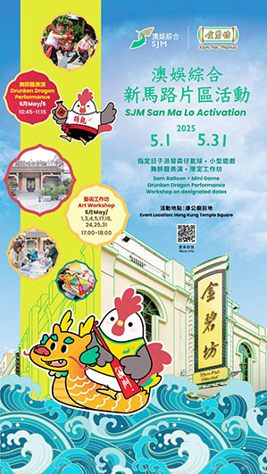 【特訊】端午佳節將至,澳娛綜合度假股份有限公司(「澳娛綜合」)將於今個 5 月在康公廟前地及「金碧坊」打造一系列精彩多元的節慶活動,包括特色美食、趣味節日遊戲、主題工作坊,以至專屬禮遇,為整個新馬路片區注入活力,誠邀全城市民與國際旅客來感受傳統端午節的濃厚節日氛圍。