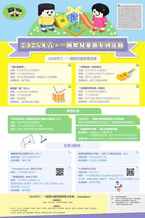 【特訊】為慶祝6月1日國際兒童節,多個政府部門、公共事業機構及民間團體共同舉辦2025年“六.一國際兒童節”系列活動,本年以“兒童權利公約"中的生存權為主題,藉以喚起社會關注兒童權利和福祉,同時讓市民一同感受節日氣氛,歡度兒童節。