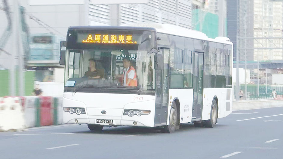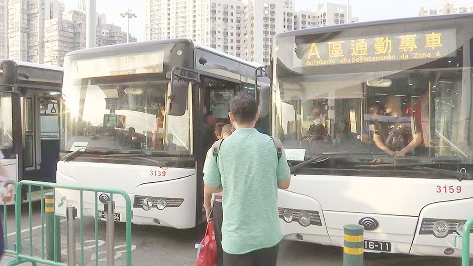 新城 A區建築工人交通專線計劃昨日 (十五日)起試行 一個月,在新城 A區站點,傍晚下班時間不少工人排隊,他們使用承建商派發的「通勤卡」乘車,有工作人員維持秩序,現場有廣播提醒注意秩序。專線由承建商安排專巴在上下班時段定點接載在 A區工作的建築工人,當局早前已實地視察站點及路線,並與兩間巴士公司試行路線,期間過程順利,並將持續檢視試行情況適時調整。