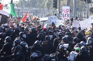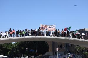 由於數百名抗議者試圖沖上穿過洛杉磯市區的高速公路,警方出動大量警車和警員封閉該路段雙向車道,並與抗議人群形成對峙。對峙期間,有人向警察投擲裝有不明物體的礦泉水瓶和石塊等,警察則使用煙霧彈驅散人群,還有多人與警方發生直接衝突後被捕。