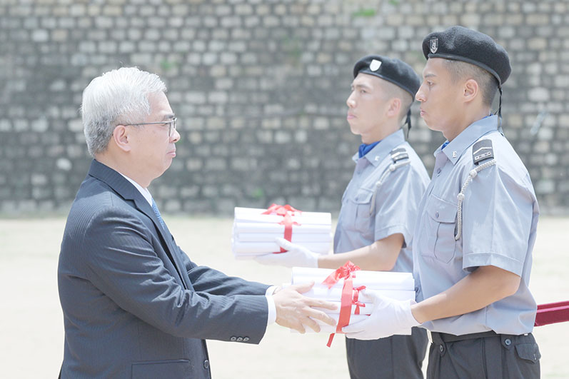 保安高校校長黃子暉致辭時勉勵學員奉行「主動警務」、「社區警務」和「公關警務」三個重要警務理念,維持好監獄的秩序。黃子暉稱,獄警是用熱情、用溫暖,用生命影響生命,改變生命的偉大事業,做好在囚人士管理工作,協助他們重建新生,全力保障社會安寧和市民的生命財產安全。今次培訓課程去年九月開課,為期約九個月,分為基礎訓練、專業訓練和實習三個階段。