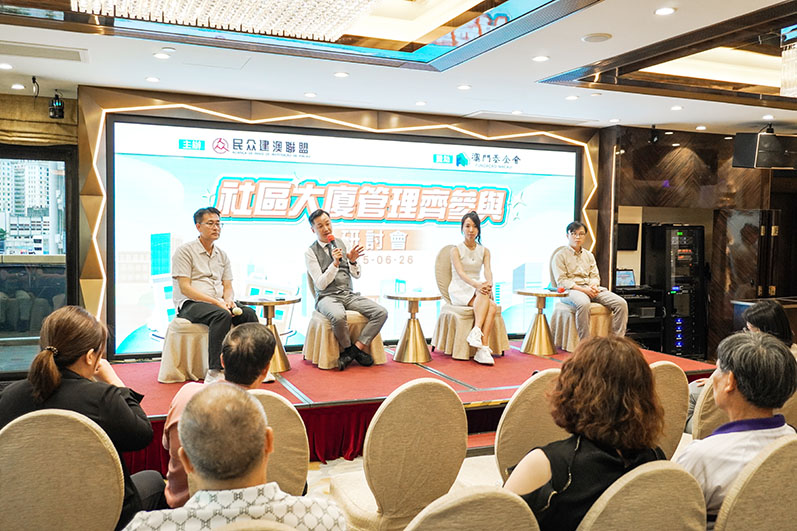 【特訊】為進一步加深大廈管理機關及居民對大廈管理知識的了解,由民眾建澳聯盟主辦,澳門基金會贊助的“社區大廈管理齊參與研討會”日前成功舉辦,研討會邀請資深土木工程師戴偉杰、機電工程師何穎茵及執業大律師麥興業擔任主講嘉賓,吸引逾一百二十名居民參與,並邀請了立法會議員宋碧琪、民建聯副主席兼社區大廈服務中心總監歐陽廣球、副理事長兼社區大廈服務中心事務主任袁漢均及副理事長兼社區大廈服務中心行政主任陳茵茵出席。