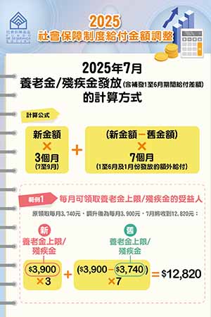 【特訊】按第116/2025號行政長官批示,社會保障制度各項給付金額調升,並追溯至2025年1月1日。1至6月的給付差額將於7月轉帳至相關受益人指定銀行帳戶。