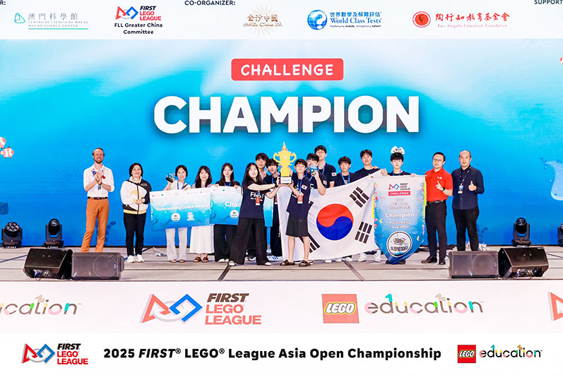 【特訊】由樂高®教育指導、FLL大中華區組委會與澳門科學館聯合主辦,金沙中國有限公司、世界數學及解難評估(WCT)及陶行知教育基金會協辦,並獲教育及青年發展局、澳門中華教育會及澳門天主教學校聯會支持的2025 FIRST® LEGO® League(FLL)亞洲錦標賽,昨日(8月10日)圓滿閉幕。賽事匯聚中國內地、日本、韓國、越南、菲律賓、羅馬尼亞、尼日利亞、哈薩克斯坦等21個國家及地區共400支隊伍、逾3,000名青少年參與。據統計,前來澳門的參賽選手、導師、評審及隨行人員近12,000人。