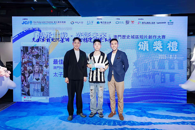 【特訊】由濠江青年商會主辦的慶祝澳門歷史城區申遺成功20週年之「傳承廿載 - 光影未來—澳門歷史城區短片創作大賽」頒獎禮於2025年8月3日順利舉行。本屆大賽延續該會針對「未來社區」的領袖培訓活動,邀請澳門青年製作創意短片(Reels),以創新視角結合歷史與未來、探索澳門歷史城區的多元魅力,並構想歷史與科技、人文與可持續發展如何交織,共同開啟社區新未來,並以鏡頭講述澳門未來社區的世遺故事。