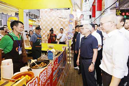 【特訊】行政長官岑浩輝23日走訪“尋味新口岸市集”,與商戶、居民和旅客交談,了解市集舉辦多天以來的營運及人流情況,並步行至友誼大馬路一帶視察,聽取完善道路交通設施規劃的構思,期望未來更便利居民旅客進出新口岸區。