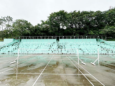 近日天氣不穩定雨水較多,有街坊反映松山綜合廣場及梯級多處有積水和青苔生長,運動場平面亦有多處損壞,對使用者安全構成威脅;另外松山跑步徑沿路涼亭遮雨蓬存在雨天漏水、地面磚塊滑溜、更衣室通風不足等設施問題。