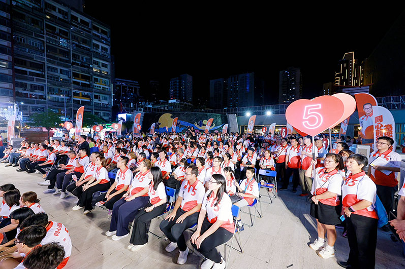 現場吸引不少支持者,他們身穿宣傳衣服,手持打氣棒,高喊競選口號,為候選人打氣,場面熱鬧。