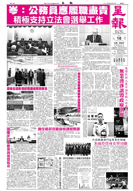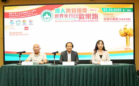【特訊】為熱烈慶祝中華人民共和國成立76周年,並響應國際群眾體育協會提倡的“世界步行日”,體育局將於10月1日早上8時15分在金蓮花廣場舉行 “2025澳人齊賀國慶世界步行日歡樂跑”。活動當日將舉行國慶升旗禮、歡樂跑及步行慶祝活動,讓澳門市民透過齊參與有益身心的體育項目,一同感受國慶的喜悅。