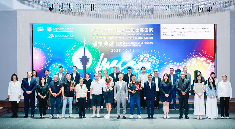 【特訊】旅遊局主辦的第33屆澳門國際煙花比賽匯演於前(11日)晚上圓滿落幕並舉行頒獎典禮。來自世界各地的10間煙花公司施展渾身解數,在橫跨9月和10月的5個煙花夜爭妍綻放。經過一輪角逐,最終由來自英國的Pyrotex Fireworx煙花公司奪得冠軍寶座,來自菲律賓的Platinum Fireworks煙花公司及中國的東信煙花公司分別奪得亞軍及季軍。
