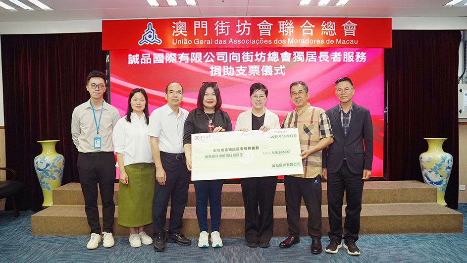 為響應並支持街坊總會為獨居老人服務賣旗籌款活動,誠品咖啡國際於今日(2025年10月15日)向街坊總會捐贈三萬八千八百八十八澳門元,以實際行動履行企業社會責任、表達企業愛心。誠品咖啡由董事總經理湯錦珍、董事梁炎彬及市場總監趙崇威三人代表,向街坊總會致送善款支票。會長吳小麗、副會長兼秘書長莫偉成、副理事長程順明及江旭純代表街坊總會接受支票。
