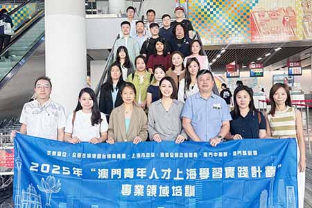【特訊】2025年“澳門青年人才上海學習實踐計劃”專業領域培訓本澳20名學員於10月19日上午在澳門國際機場啓程前往上海,正式開展為期兩個月的學習實踐。“澳門青年人才上海學習實踐計劃”專業領域培訓由全國政協港澳台僑委員會、上海市政協、澳區全國政協委員、澳門中聯辦、澳門基金會共同主辦。本期計劃共有20名學員參與,分別來自澳區省級政協委員聯誼會、澳門中華總商會、澳門街坊會聯合總會、澳門婦女聯合總會、中國銀行股份有限公司澳門分行、澳門中國旅行社股份有限公司、澳門中華學生聯合總會、澳門紅十字會、澳門學者同盟、澳門江門同鄉會、澳門中華新青年協會、澳門山東社團總會、澳台交流聯合總會、澳門社會科學學會等多個澳門工商及社會服務界等團體。日前,主辦單位已安排學員在澳門學習澳門城市發展、建設、政制與社會及經濟現況等主題的培訓活動,增進對澳門相關方面的基本知識。抵滬後,學員將分別前往浦東新區和黃浦區政府相關部門及企事業單位進行兩個月交流實踐活動,學習內地綜合旅遊業、大健康、現代金融、高新技術、會展商貿和文化體育等重點領域發展。