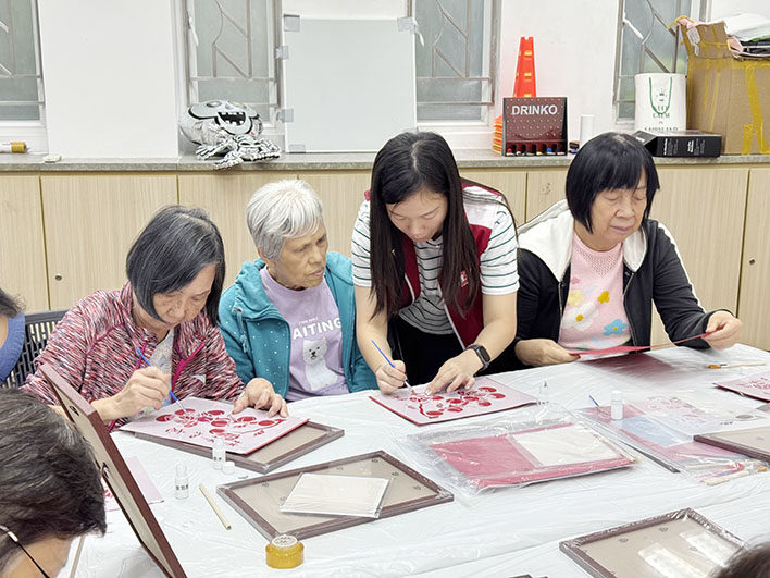 參與本次工作坊的十位長者展現出高度的投入度。在「藝術創作」環節中,長者們除了動手制作金箔畫外,還不時與身旁的參與者互相交流;而在「簡易居家運動」環節裡,大家隨著音樂節拍一起活動筋骨,現場氣氛活躍。透過這些主題,長者們不僅學到了實用的健康知識,更在互動過程中擴闊了社交圈子,建立了同儕間的支持網絡,減少了孤獨感。