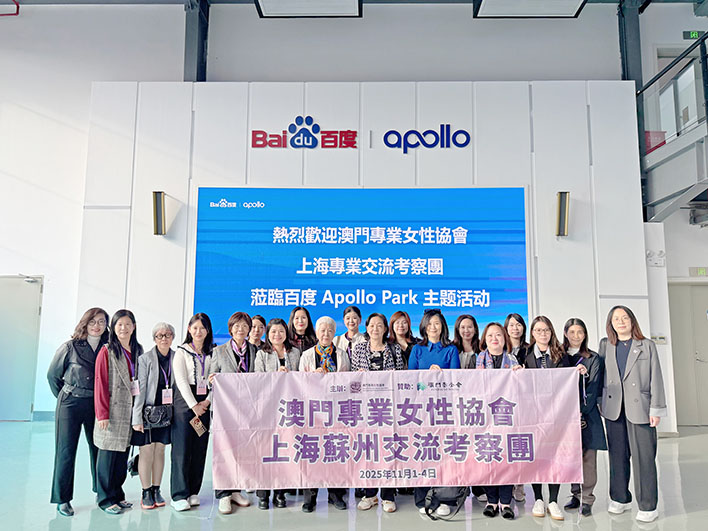 考察團還走訪百度Apollo Park,近距離感受上海在科技創新與產業升級中的前沿動態。團員親身體驗園區無人駕駛車輛,詳細了解自動駕駛技術在城市交通、產業服務中的成熟應用,更透過技術團隊講解,清晰認知“科技賦能”如何推動傳統產業轉型、優化社會服務效能,這不僅讓團員對內地科技發展實力有直觀認知,更為澳門專業女性結合自身領域探索創新方向提供參考。