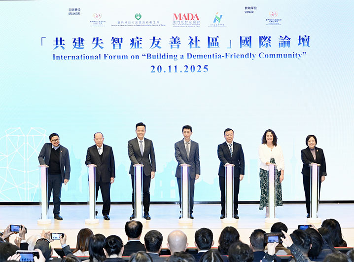 【特訊】11月20日下午,由澳門社會工作局、衛生局、鏡湖護理學院及澳門失智症協會合辦的「共建失智症友善社區」國際論壇,於鏡湖護理學院會議中心順利舉行,吸引約500人參與。論壇旨在提升公眾對失智症的正確認知,推廣包容與尊重的友善文化,並促進國際及區域經驗交流。活動獲社會工作局資助。