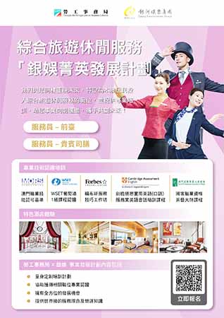 【特訊】為促進本地人才職業發展,勞工事務局(下稱“勞工局")和銀河娛樂集團(下稱“銀娛")合作推出“銀娛菁英發展計劃(酒店營運)",以“先入職、後培訓"方式,為本澳居民提供專業培訓及工作實踐機會,今(26)日起接受申請。