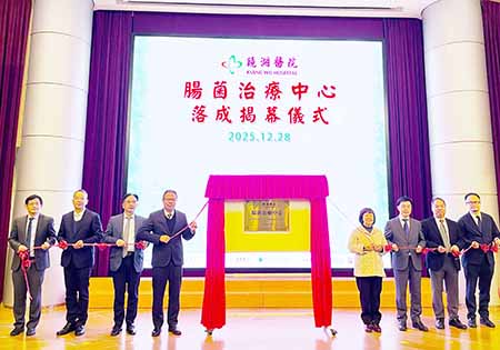 鏡湖醫院腸菌治療中心舉行揭幕儀式,中心將於明年初投入運作,並引入腸道菌群治療項目。院方提到,腸道菌群與多系統疾病的關聯研究取得突破性進展,除了慢性便秘、炎症性腸病等消化系統疾病,亦為部分神經系統疾病提供了新的干預方式。鏡湖醫院副院長張振榮致辭介紹,鏡湖醫院派出學習小組赴南京醫科大學附屬第二醫院微生態醫學科進修洗滌菌群移植(WMT)技術,構建起「診療一操作一護理」的全鏈條知識體系。張振榮指出,澳門仍有大量患者面臨著治療手段有限、生活品質受困的困境,將相關技術規範引入本地臨床,搭建安全高效的診療平台,為患者提供全新的治療選擇。