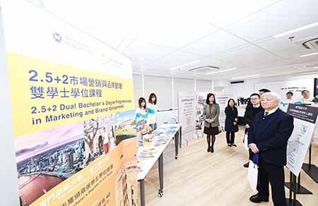 旅遊大學開放日開幕式昨午舉行,一眾主禮嘉賓共同為開放日揭開序幕。現場設有課程及招生攤位提供豐富資訊,同時舉行多場課程分享會、專題講座及工作坊,由師生分享校園生活點滴以及畢業後的職涯發展狀況。
