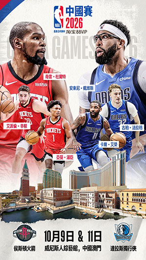【特訊】NBA與金沙中國有限公司宣佈,淘寶 88VIP呈獻 – NBA中國賽2026將於北京時間10月9日(星期五)及10月11日(星期日)在澳門威尼斯人綜藝館舉行,達拉斯獨行俠和侯斯頓火箭將上演兩場季前賽對決。