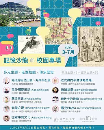 【特訊】由澳門基金會主辦的“記憶沙龍”校園專場(中學場),致力向本澳中學生傳播澳門在地歷史文化,探索小城在地歷史及社會脈絡,推廣澳門形象。2026年的校園專場講座將於3月至7月期間舉辦,現正開始接受報名,歡迎本澳學校組織參加。