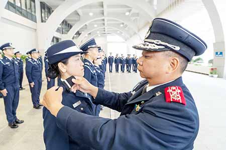 副關長李煜輝、助理關長葉華釗及助理關長吳嘉慧為晉升人員佩戴肩章,各人正式履新成為副關務督察。儀式上還向是次晉升課程獲得總成績優異獎的鄭曉珊頒發了獎項。