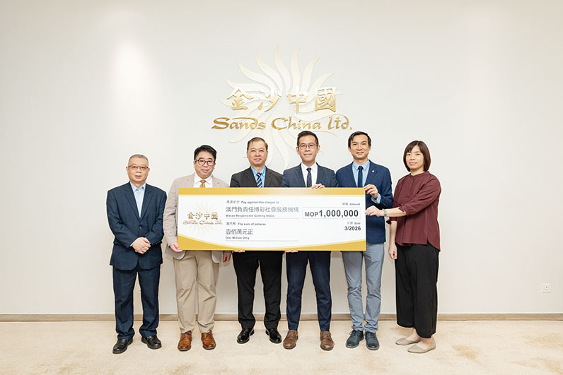 【特訊】為配合澳門特區政府的負責任博彩政策方針,金沙中國有限公司近日向五所本澳社服機構合共捐贈澳門幣一百萬元,以支援各機構在社區推廣負責任博彩的工作。金沙中國一直積極履行企業社會責任,自2006年起透過捐款,致力將負責任博彩的正面理念融入本澳社區,迄今累計捐出近澳門幣一千萬元。