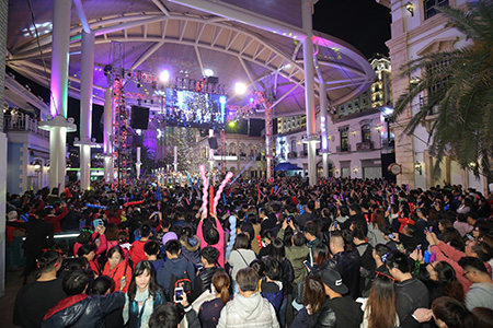 【特訊】澳門漁人碼頭作為每年戶外除夕倒數的熱點場地之一,今年的「Countdown Fever2017 除夕倒數派對」再次完美落幕,吸引了近三萬人參與,當中包括市民及遊客。當晚超過十位的人氣明星陣容及配合新落成的天幕投射製作,為這一年一度的盛會增添熱鬧氣氛。一眾表演嘉賓包括陳豪、田蕊妮、江若琳、關楚耀、黎諾懿等,搭配專業舞者及現場樂隊帶動全場勁歌熱舞,與觀眾共同迎接二○一七。