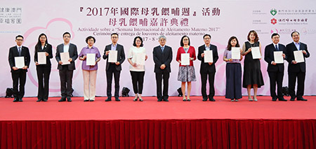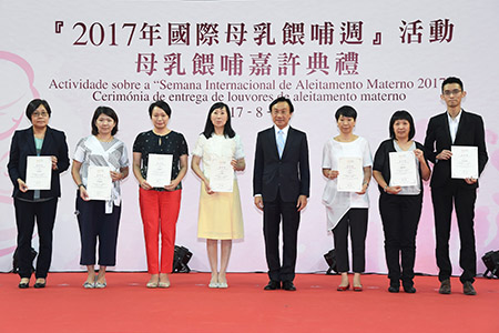 譚俊榮司長在致辭時特別感謝參與活動的公、私營機構,及持續以母乳餵哺嬰兒的媽媽。他表示,當局已是第二年舉辦“母乳餵哺嘉許典禮 ”,活動得到社服機構的支持,更有600個以上的家庭報名參與活動,意義重大而深遠。他指出,為響應世界衛生組織(WHO)的呼籲,支援婦女們外出時能夠隨時哺乳,自2016年初開始,社會文化司率先鼓勵轄下部門設立母乳餵哺室,至今本澳公、私機構已設立超過100間母乳餵哺室。衛生中心由媽媽懷孕至產後均提供一系列的推廣及支援,透過海報、小冊子及電視媒體向全澳市民進行宣傳推廣。哺乳媽媽亦可在“衛生局資訊站-母乳資料”中隨時查閱相關資訊。此外,仁伯爵綜合醫院亦特別加強了產後早期“母嬰肌膚接觸”的安排,鼓勵及推動哺乳的開始。當局將繼續鼓勵各機構成為“母乳餵哺友善工作間”,希望透過機構政策支援及員工的協助,讓所有在職婦女實現持續母乳哺育嬰兒的願望。而經過近年大力度的推廣,根據衛生局的資料顯示,2016年出生嬰兒曾以母乳餵哺的比率超過九成二,較2015年提升4%;而2016年出生嬰兒以純母乳餵哺至4個月或以上的比率超過兩成,以純母乳餵哺至6個月或以上的,人數亦有上升趨勢,顯示母乳推廣工作成績理想。