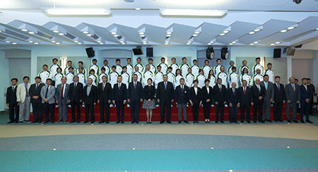 出席辭行儀式的還有行政長官辦公室主任柯嵐、民政總署管理委員會主席戴祖義、教育暨青年局局長梁勵、中國澳門體育暨奧林匹克委員會會長馬有恆與理事會主席盧景昭、體育委員及參賽總會代表等。