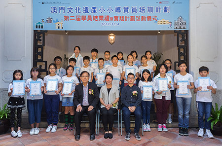 【特訊】由文化局主辦的“澳門文化遺產小小導賞員培訓計劃”日前(十一月四日)於鄭家大屋順利舉行第二屆學員結業禮暨實踐計劃啓動儀式。一眾嘉賓、學員及家長共同見證是次計劃的成果,現場氣氛熱烈,濟濟一堂。出席嘉賓包括文化局文化遺產廳廳長梁惠敏、澳門文物大使協會會長廖嘉豪、澳門文化遺產協會項目主任李雪芬、資深歷史學者鄭國強及資深歷史學者陳樹榮。
