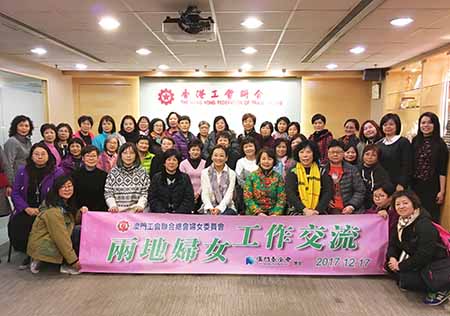 當日獲得香港工會聯合會婦女事務委員會主任梁頌恩及其他行業工會女負責人熱情接待,向我會代表團詳細介紹了該會如何關注婦女勞工事務、爭取婦女勞工權益以及就業平等的機會,並建議政府及社會企業締造有利的工作環境吸引一班家庭主婦重投社會工作,提高婦女在政治及經濟上的地位,爭取和支持婦女參與社會各項工作,達至兩性平等。通過是次交流學習,深入了解香港工會婦女委員會如何為婦女職工爭取的勞動權益,構建和諧社會發揮重要的作用。