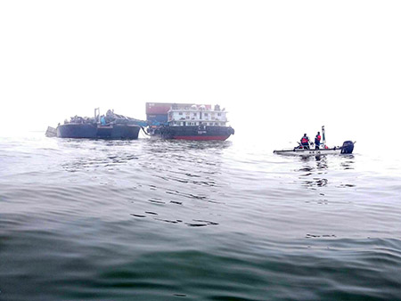 【特訊】昨(三月一日)日早上一艘貨船與一艘沙船於往內港航道入口附近發生碰撞,貨船上有兩個貨櫃墮海,海事及水務局和海關派出船隻前往協助處理。