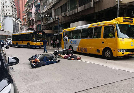 事發在昨(五)日上午近十一時,士多鳥拜斯大馬路近二龍喉公園發生一宗交通意外。消防接報到場後發現有兩部電單車發生碰撞,兩名男性電單車駕駛者倒地受傷,其中一名駕駛者傷勢較重,昏迷在地,另一名傷勢較輕駕駛者雖然受傷倒地,仍不忘拿出手機拍攝現場情況,當時兩部電單車上均沒有乘客,相撞後兩部電單車也雙雙跌倒在馬路中線,來往交通一度受阻。經消防救護員檢查後,發現其中一名男傷者頭部受傷出血,意識模糊,傷者年約五十歲、本澳居民,後枕裂傷出血,口鼻出血及四肢擦傷,被送往山頂醫院搶救。另一名男性傷者,五十四歲,本澳居民,右手肘擦傷及右肋骨痛楚,送院時清醒情況穩定。
