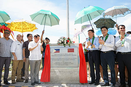 當天上午,在該戒毒中心多功能禮堂舉行的移交儀式上,中國駐菲使館商務參讚金遠,將印有中菲兩國國旗的項目鑰匙,移交給菲律賓衛生部長弗朗西斯科•杜克。