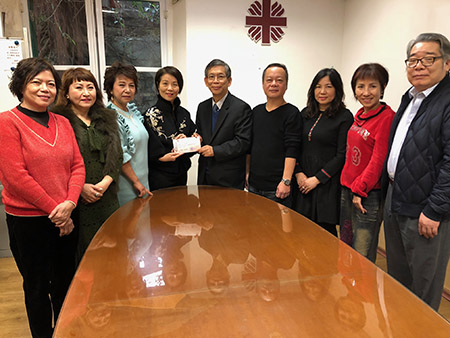 隨後,沙碧媚副理事長等主持支票移交儀式,由明愛總幹事潘志明接收。