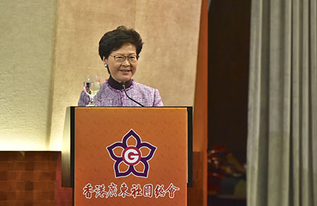 【香港中通社2月15日電】(記者 企日昭)香港廣東社團總會15日舉行新春團拜酒會。香港特區行政長官林鄭月娥出席酒會時表示,連接香港與深圳的蓮塘/香園圍新陸路口岸將於年內落成,為不日出台的粵港澳大灣區規劃增加地域優勢,以達到灣區“宜居、宜遊、宜業”的構思。