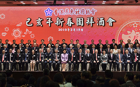 據介紹,香港特區行政長官、中聯辦副主任何靖、香港廣東社團總會主席梁亮勝等人士,出席了香港廣東社團總會新春團拜活動。