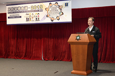 【特訊】4月9日上午,2019年度「民防架構會議」在北安治安警察局出入境事務廳大樓舉行,警察總局局長、民防行動聯合指揮官馬耀權聯同29個民防架構成員代表,以及中國人民解放軍駐澳門部隊副參謀長高志軍大校等人出席了本次會議。