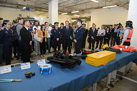 此外,現場亦設置防災救援裝備展覽區,展出水陸兩用車、纖維救生艇、無人探測船、警用無人機等多種救援設備,展示當局災害救援工作的準備情況。