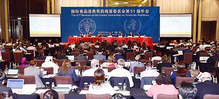 由國家農業農村部主辦、國家農業農村部農藥檢定所承辦、澳門特別行政區市政署協辦的第五十一屆國際食品法典農藥殘留委員會會議,由四月八日至十三日在澳門舉行。來自四十九個成員國和一個成員組織(歐盟)及十二個國際組織等三百多名代表參加了本屆會議,就十七項議題及三十三種農藥在動植物產品中三百六十多項最大殘留限量草案進行審議。一連六天的會議,各項議題在各國及組織的積極參與下均達成了共識,會議順利完成並達到預期目標。