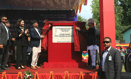 20日,尼泊爾總理奧利,尼通信與信息技術部部長普拉薩德,尼泊爾第三省首席部長鮑德爾,尼泊爾電信總經理阿迪卡里,中國駐尼泊爾大使侯艶琪、經商參讚張帆,中國通信服務國際有限公司總經理許楚國及當地逾萬名居民參加開工典禮。