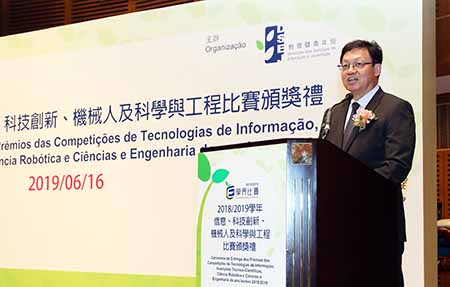 為表揚獲獎學生在4項學界科普比賽中的努力,教青局於6月16日假澳門科學館會議中心舉辦“2018/2019學年信息、科技創新、機械人及科學與工程比賽頒獎禮”。